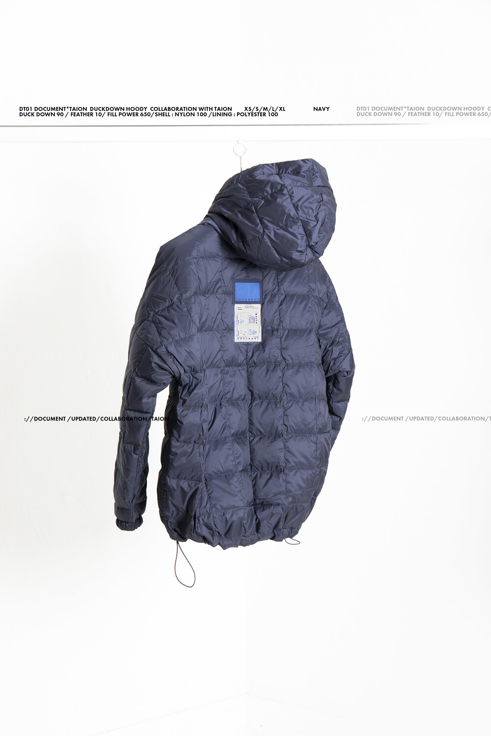 일본의 이너 다운 웨어 브랜드 TAION과 DOCUMENT(도큐먼트)의 협업으로 만들어진 덕다운 후디입니다.