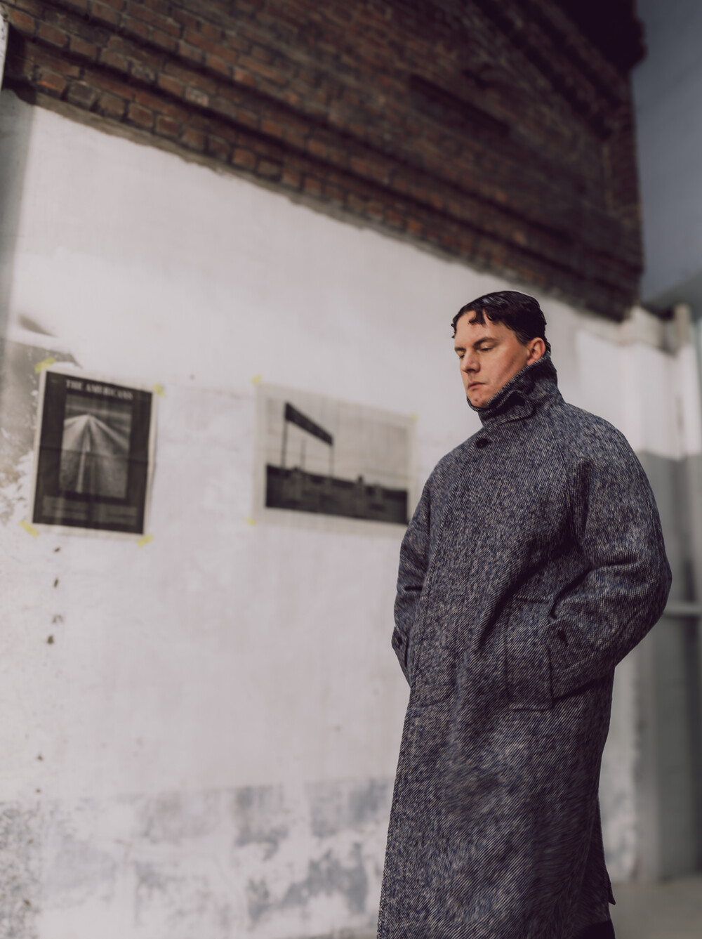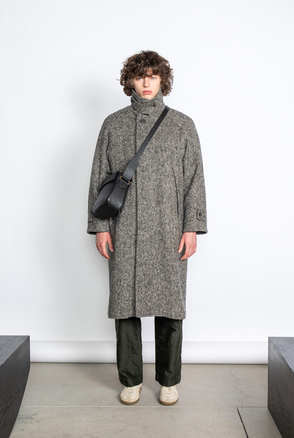 :DONEGAL TWEED INVERTED PLEATS BALMACAAN COAT_BEIGE