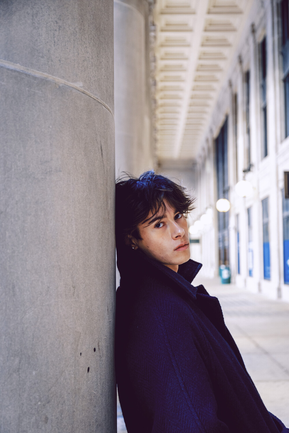 :DONEGAL TWEED OVERSIZED BALMACAAN COAT_NAVY