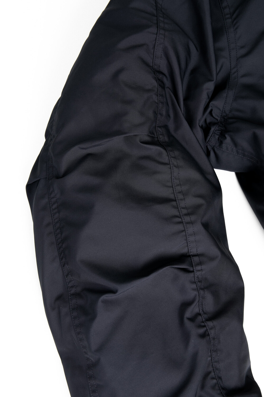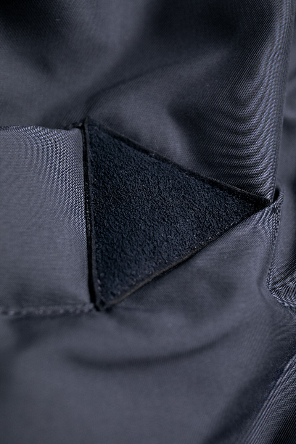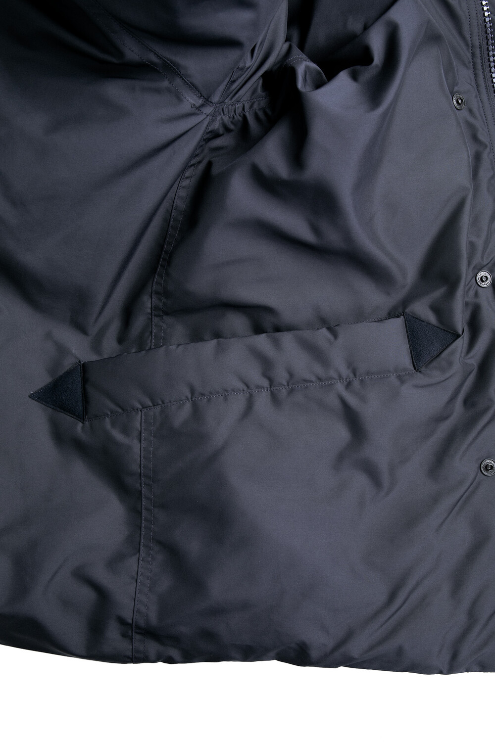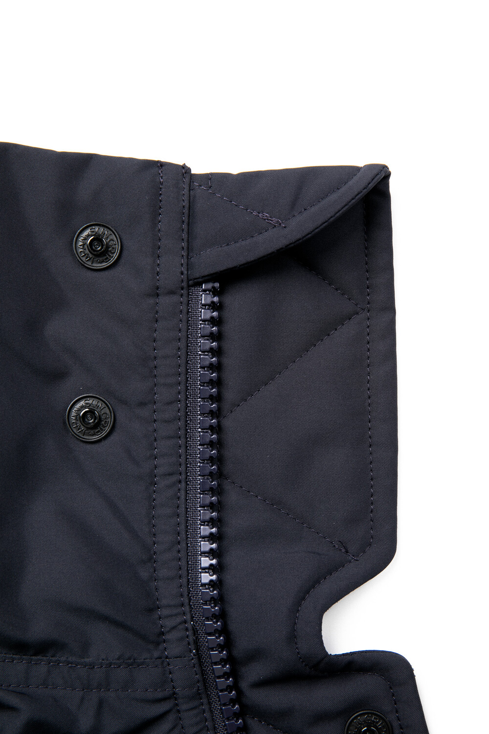 개구부는 YKK 2-WAY 지퍼를 사용하여 입고 벗기 편리하며, 네크와 상반신이 나눠지는 플라켓의 YKK 스냅을 이용하여 이중으로 바람을 막아 보온성을 높일 수 있도록 설계되었습니다.