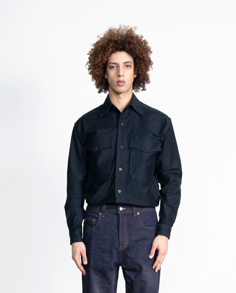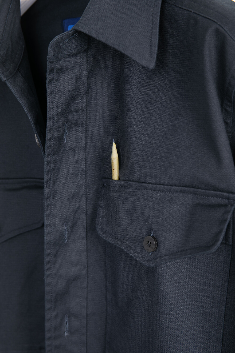 양족 가슴 쪽에는 주머니 덮개가 있는 형태의 더블 포켓이 자리하며, 네이비 계열의 옷장의 새로움을 선사합니다.